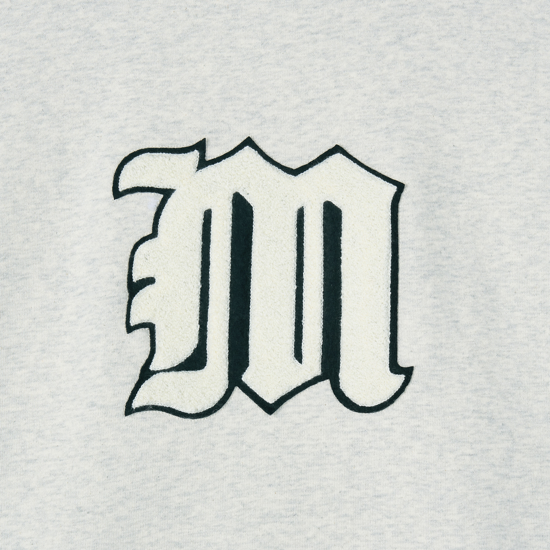 전면 old english M 로고를 펠트와 부클 자수로 입체감을 표현.